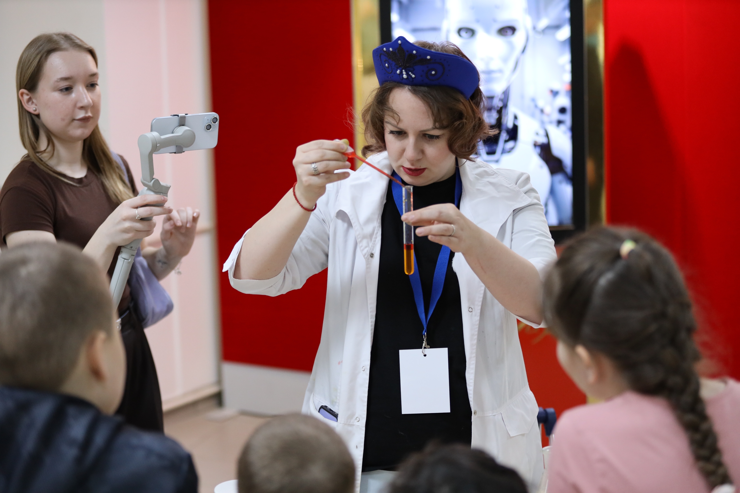 В зоне «Опытово» демонстрировались физические и химические эксперименты и проходило изучение микромира, а в «Робополье» посетители собирали конструктор «Электрознаток», отправлялись в виртуальную реальность с фильмом «Электроэнергетика России», делали маски роботов и печатали робо-фигурки с помощью 3D-печати.