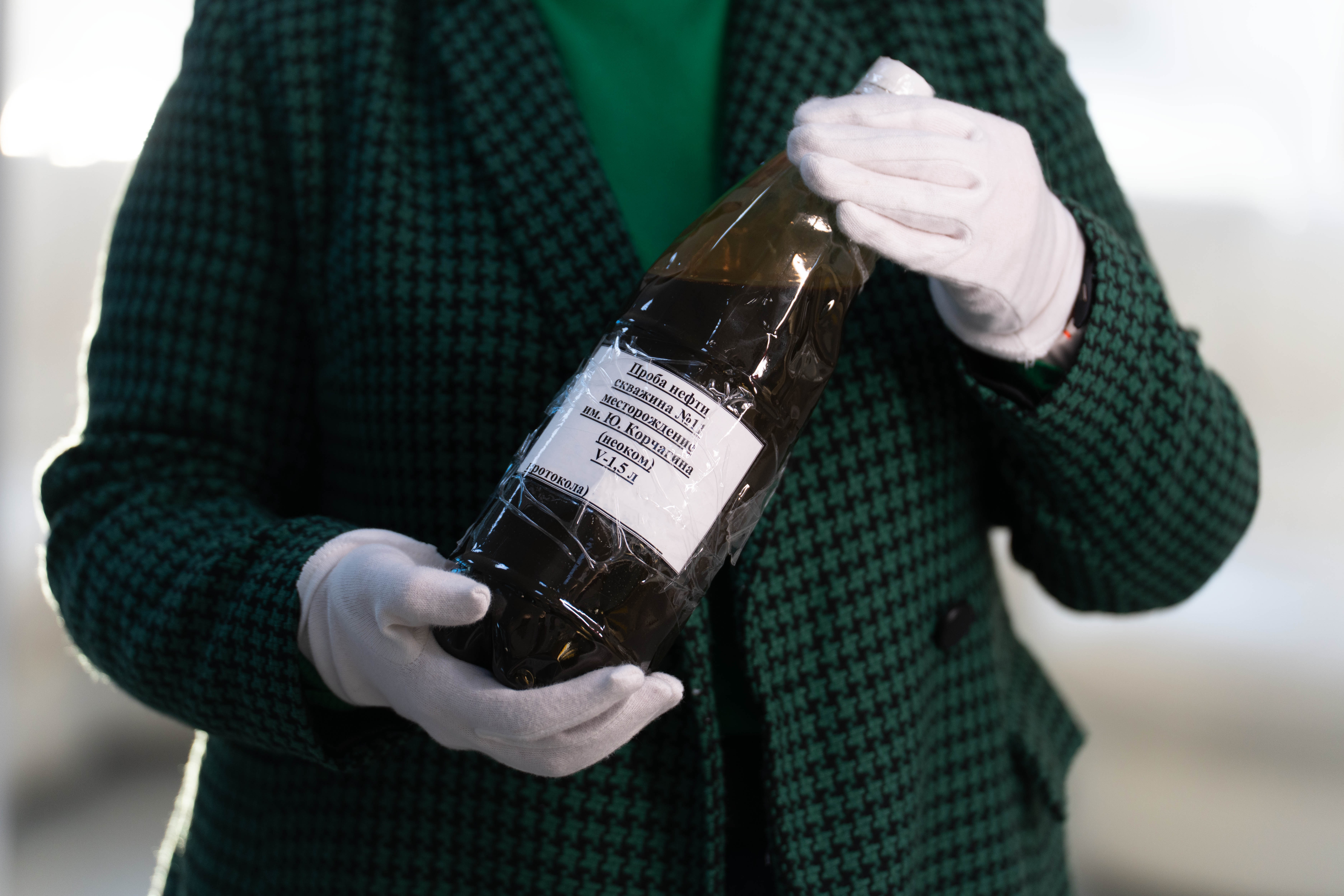В музее новое поступление! Радуемся, так как образцов нефти с территории Северного Каспия (Астраханская область) в нашем фондовом собрании еще не было!